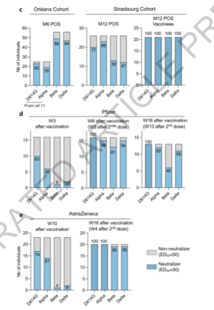 - 新冠患者康复12个月后的血清不能有效中和任一变异毒株,再接种疫苗后康复者血清可有效中和所有变异。