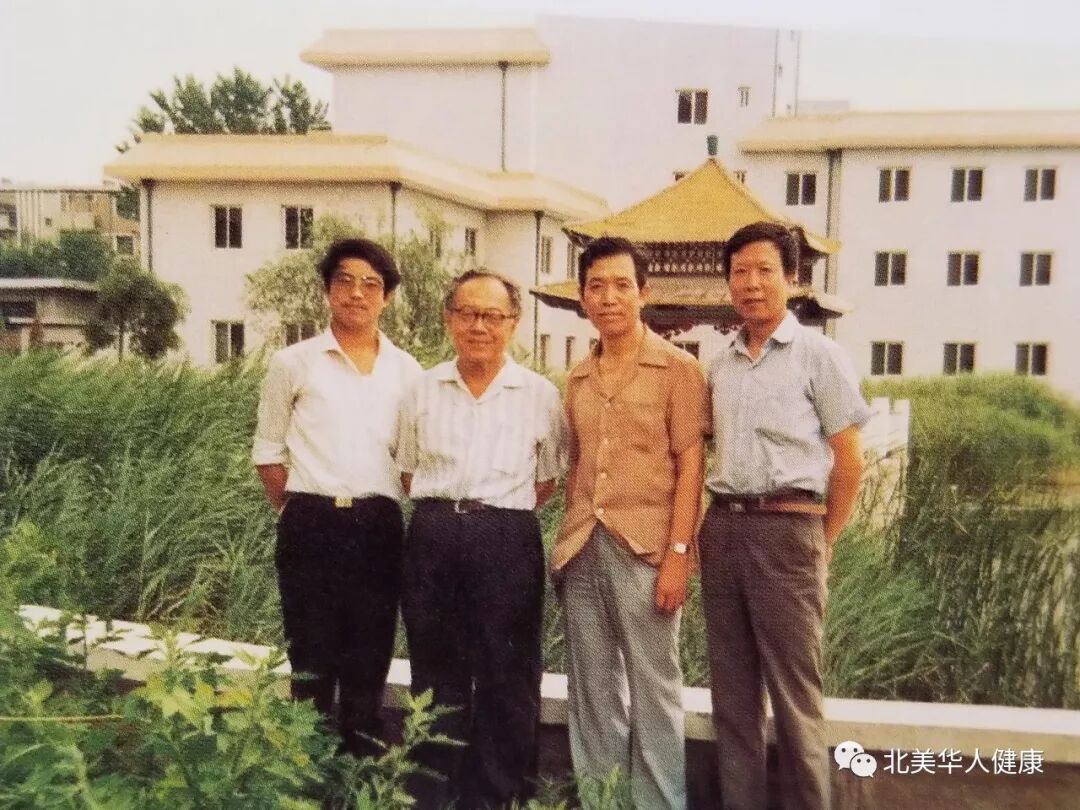 1990年6月耿贯一教授与弟子在校友合影, 左起: 仇成轩、耿贯一、王建华、王培山